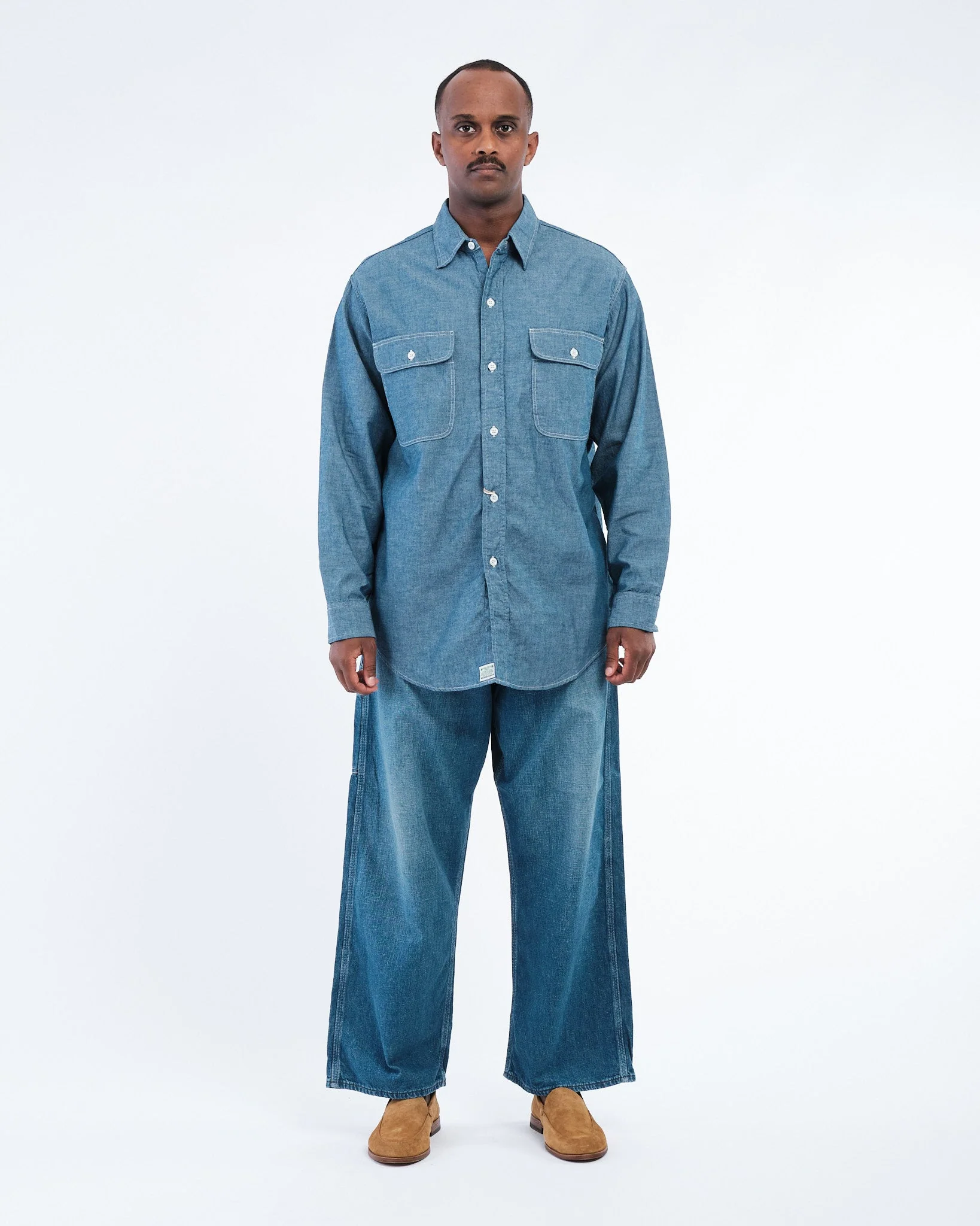 The orSlow CHAMBRAY WORK SHIRT is a classic workwear-inspired shirt, combining durability with modern comfort. Made from 100% cotton chambray, it offers a soft feel and breathable experience. The shirt features a button-down front and two chest pockets, offering both style and functionality. Designed with a relaxed fit, it provides all-day comfort. Whether worn casually or for a more structured look, this shirt is versatile and timeless. The shirt is crafted with reinforced stitching for added durability and is designed and made in Japan, ensuring superior craftsmanship.