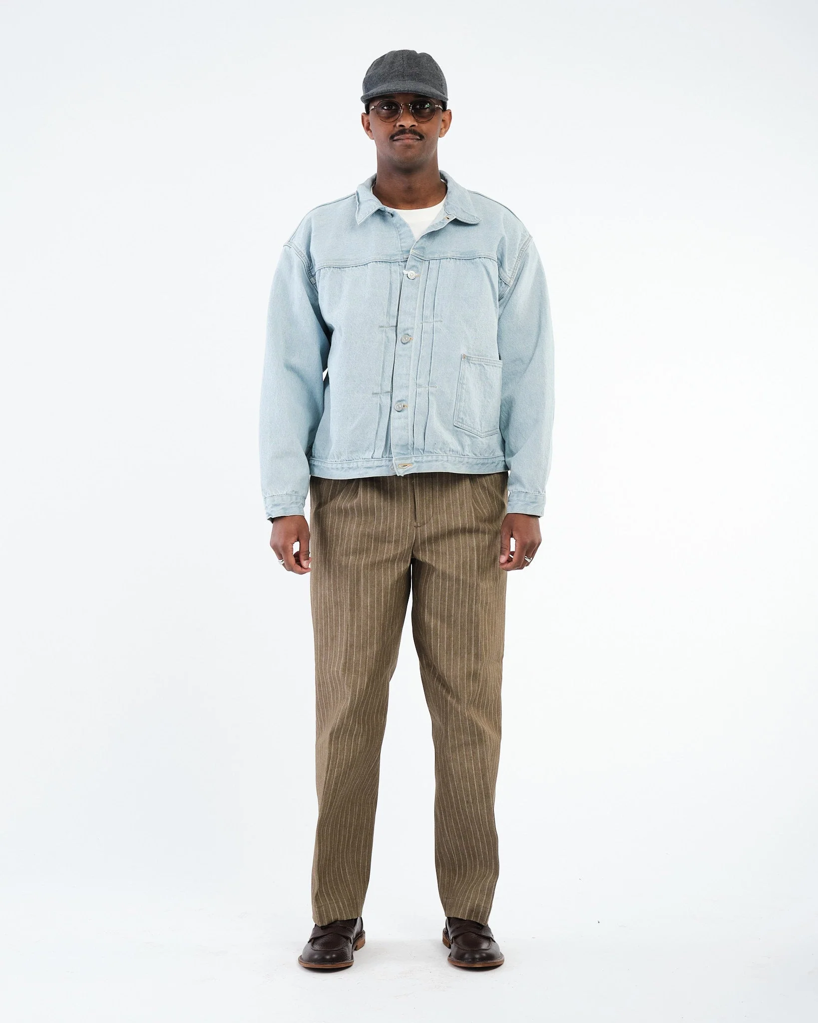 Step into the world of vintage-inspired cool with the KAPTAIN SUNSHINE Denim Tracker 1P Jacket in Indigo Ice Wash. Crafted in Japan from a 13.5oz selvedge denim, this beauty takes cues from 1940s workwear with a relaxed, boxy silhouette and thoughtful details like pleats and a single chest pocket. Woven on old-school shuttle looms, the fabric is rich in texture and character, with a washed finish that gives it a perfectly lived-in vibe from day one. It's the kind of jacket that only gets better with time, wear, and adventure.
