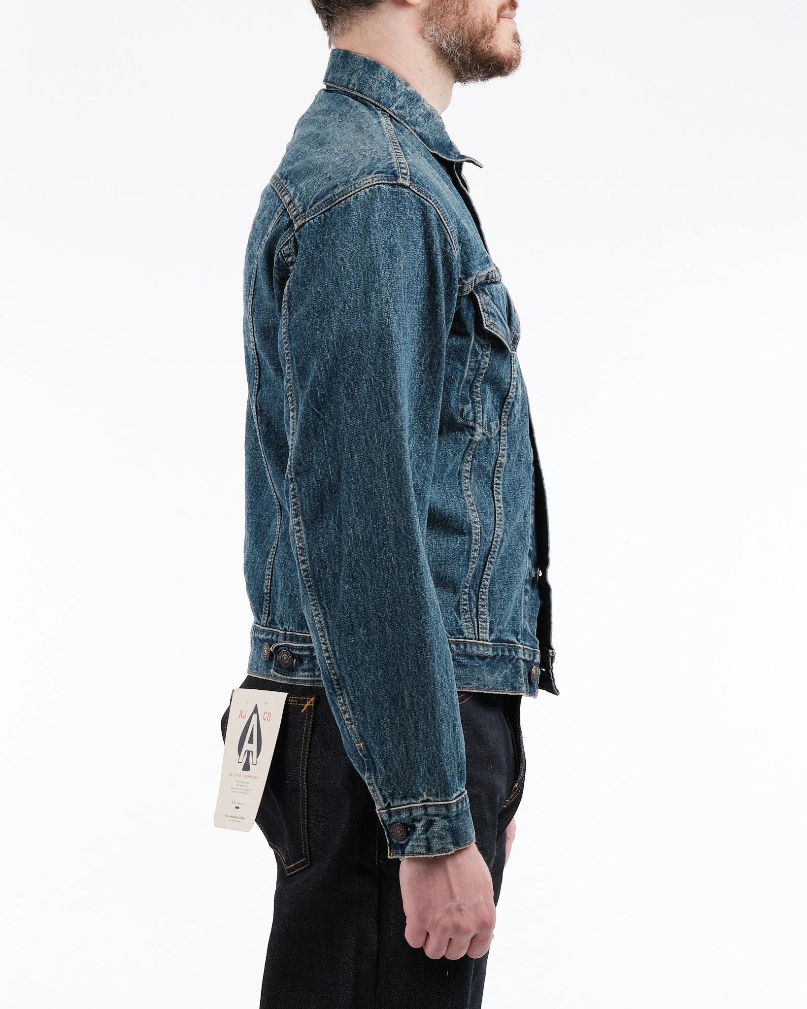 Immerse yourself in the essence of American style with the orSlow TYPE 3 1960s DENIM JACKET in USED WASH. Meticulously crafted with precision and attention to detail this jacket exemplifies orSlows dedication to creating top quality denim finishes. Each jacket undergoes treatment, ensuring that every aspect. From the distinct fading on the elbows to the vintage wash. Is authentic and natural. Drawing inspiration from the 1960s a period that made the denim jacket iconic this garment showcases features like v style pockets, seams, side cinches and shortened cuffs embodying enduring elegance. Constructed from 100% cotton selvedge denim and modeled after the Type III trucker jacket this Japanese made piece preserves key elements such as dual cinch tabs and pointed flap pockets all adorned with a worn in fade for that coveted vintage look and texture. More than clothing wearing this jacket is, like embracing a slice of American heritage; it captures a piece of history reminiscent of one of Americas most stylish eras.