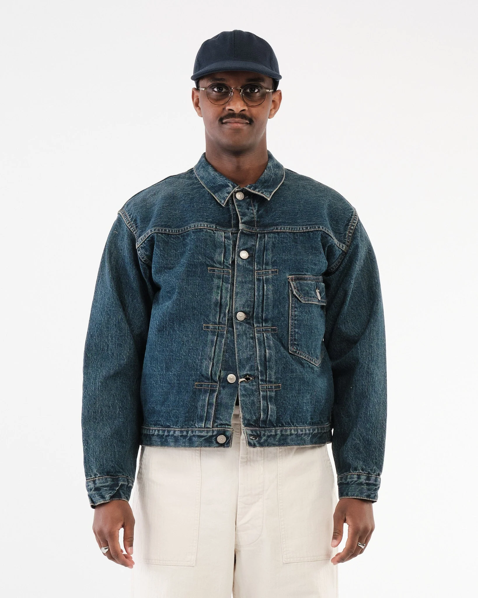 The orSlow Type 1 40's Pleated Front Blouse in 2 Year Wash is a tribute to classic 1940s workwear, reinterpreted with premium craftsmanship and a timeless aesthetic. Crafted from 100% cotton selvedge denim, this piece combines durability, comfort, and a beautifully aged finish that replicates two years of natural wear.